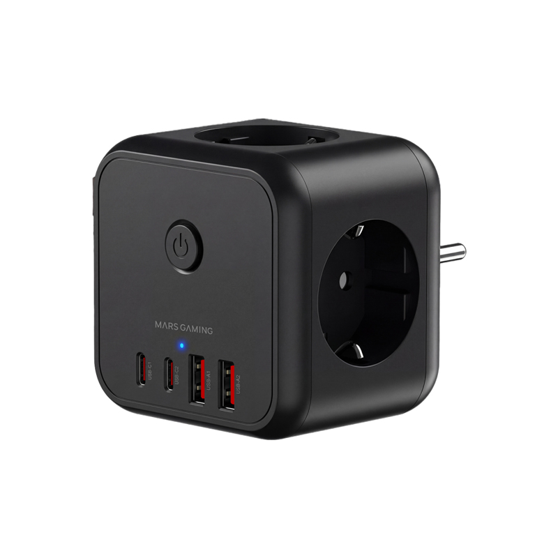CARGADOR CUBO 3xAC + 2xUSB-C + 2xUSB-A 20W PD+GaN TYPE-F NEGRO MARS GAMING