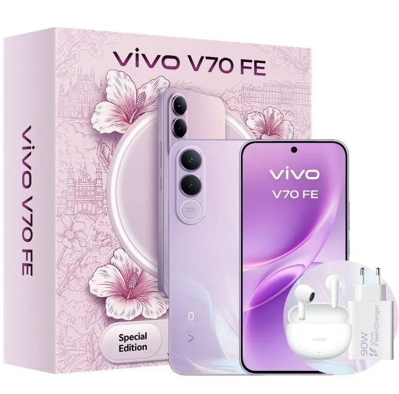 V70 FE / 6,83" AMOLED 120 Hz / Dimensity 7360 / 8GB + 512GB / 200 MP OIS / 7000 mAh / 90 W / Android 16