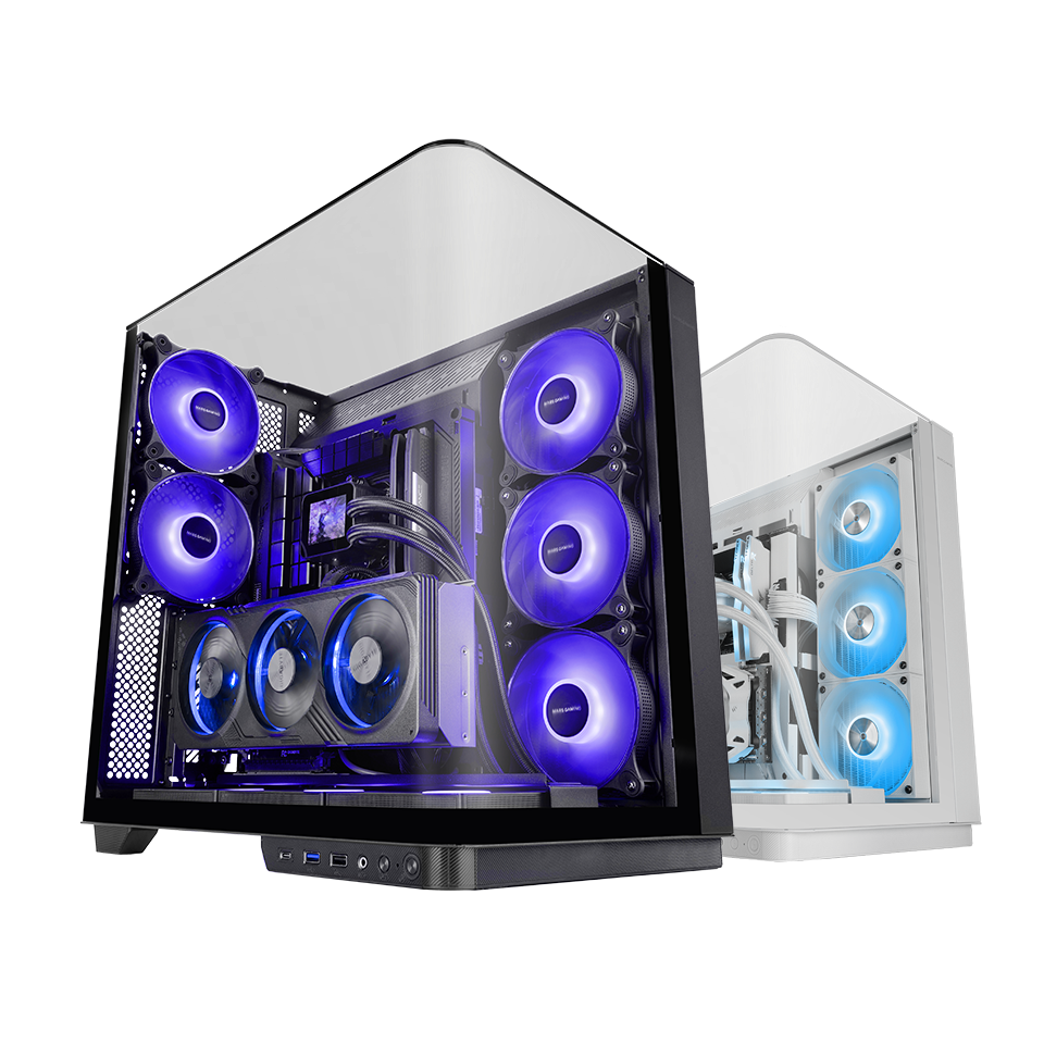 Triple ventilación frontal de serie, soporte para hasta 8 ventiladores de 120 mm, rejilla superior y diseño de cámara dual. Compatible con refrigeración líquida de 240 mm y 120 mm.