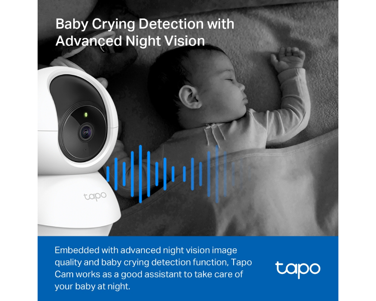 Equipada con visión nocturna avanzada y detección de llanto de bebé, la Cámara Tapo refuerza el cuidado de tu bebé las 24 horas del día.