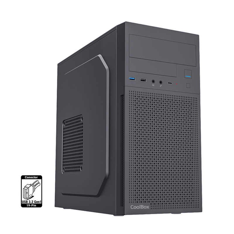 microATX / Cooler CPU 140 mm / 3×SSD + 1×HDD / USBC + USB 3.2 + USB 2.0 / Fuente de 500W